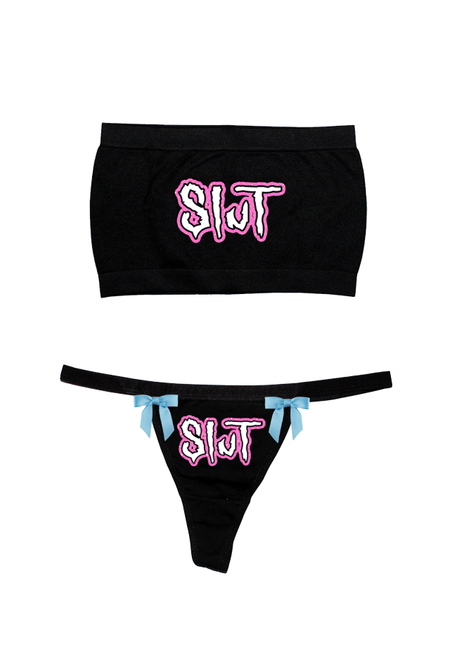 SPARKLE PRINT ON A TUBE TOP + MATCHING THONG WITH BOWS