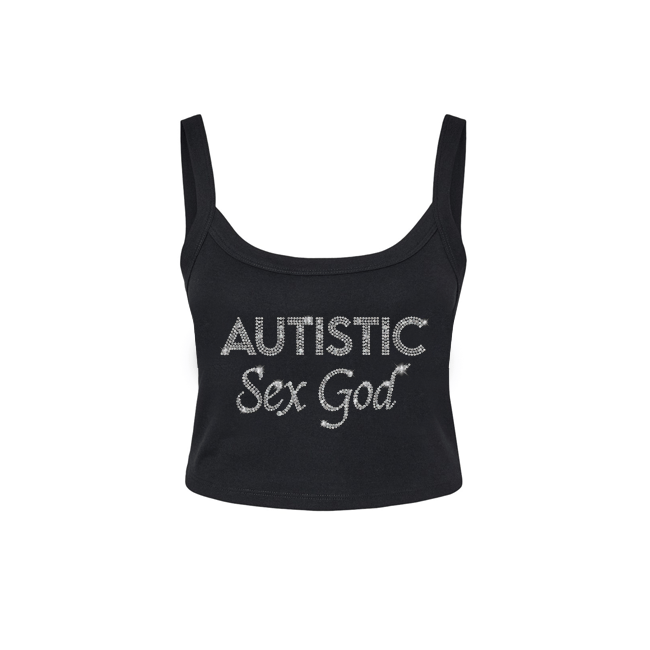 RHINESTONE PRINT ON A CROPPED SPAGHETTI STRAP TOP