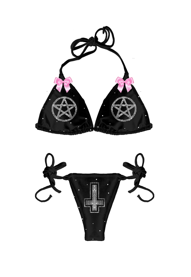 2-PIECE RHINESTONED BIKINI SWIMSUIT SET WITH BOWS