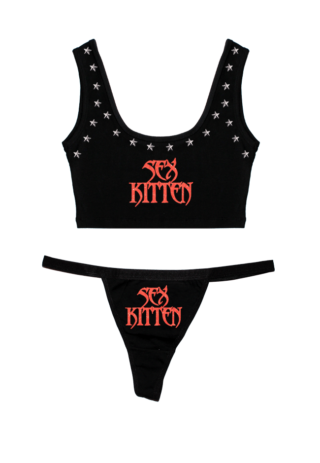 SPARKLE PRINT ON A CROPPED STUDDED SCOOP NECK TOP + MATCHING THONG