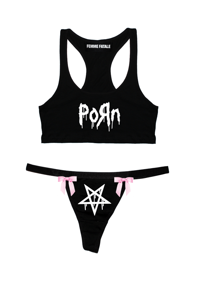 SPARKLE PRINT ON A CROPPED TANK TOP + THONG WITH BOWS